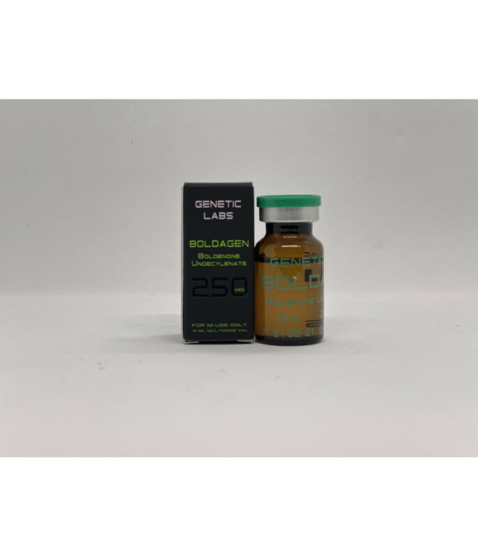 Купить Болденон Boldagen 10 ml 250 mg/1ml Genetic LabsBoldagen является синтетическим стероидом. Его действующее вещество — Болденон. Это популярный компонент для спортсменов разных категорий, поскольку он обеспечивает быстрый рост мышц. Поставляется в удобном флаконе в виде суспензии.Данный препарат является анаболиком, а также имеет эстрогенный и андрогенный эффект. Ароматизация при применении стероида незначительна, поэтому это не приводит к проблемам. Особенности препарата Болденон является лучшим выбором для того, чтобы набрать массу и убрать подкожный жир. Также при помощи этого препарата можно добиться выразительного рельефа мускулатуры. Благодаря низким андрогенным свойствам, Болденон Boldagen можно применять новичкам, а также женщинам. Препарат имеет низкий уровень риска развития побочных эффектов, поэтому его популярность достаточно высока. Применение данного стероида влияет на насыщение мускулатуры кислородом, поскольку он увеличивает уровень эритроцитов в крови. Кроме того, увеличивается сила и выносливость, а это важно для длительных и эффективных тренировок с применением больших нагрузок. Как принимать БолденонДля эффективной мужской тренировки необходимо использовать от 400-600 мг Болденона в неделю. Курс составляет от 8 до 10 недель. Увеличение дозы или продление курса не требуется, поскольку это не дает особого результата, а только приведет к развитию побочных эффектов. Меньшее количество также не даст видимого результата, поэтому стоит применять средство согласно указаниям в инструкции. Покупка этого препарата производится спортсменами, чтобы:нарастить мышечную массу;увеличить силовые показатели;увеличить количество эритроцитов в крови;повысить либидо;увеличить аппетит;Средство оказывает стимулирующее действие на кроветворение. Отрицательное воздействие на организм этот препарат не оказывает, но все же возможными побочными эффектами являются акне и угревая сыпь, нарушение сна, увеличение простаты, раздражительность и облысение. Риск их довольно низкий.Болденон Boldagen ценаСредство способствует медленному, но устойчивому приросту рельефной и твердой мускулатуры, поэтому его выбирают большинство атлетов. После применения препарата наблюдается увеличение уровня кислорода в крови, что снабжает организм и мышечную массу во время тренировок. Болденон Boldagen позволяет избежать задержки жидкости в мышцах. Опытные спортсмены предпочитают этот стероид, поскольку он является идеальным анаболиком, который имеет широкий спектр вариантов использования. Купить его, и другие инъекционные стероиды, можно в нашем магазине по доступной цене. Заказ и доставка производятся быстро, в кратчайшие сроки.