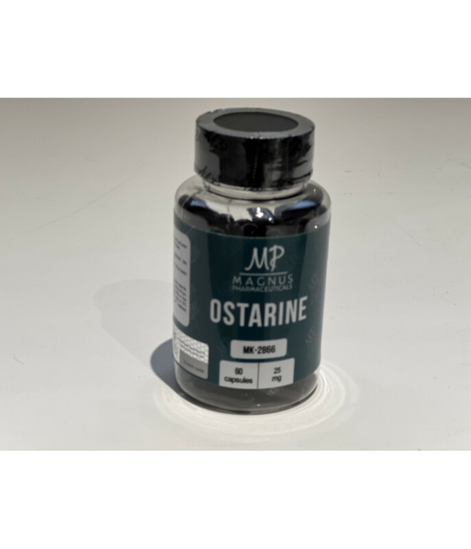 Описание Ostarine (MK-2866) 60 caps (25 mg) MagnusOstarine (Ostarol, MK-2866) – селективный модулятор андрогенных рецепторов. Препарат разработали специально для борьбы со следующими заболеваниями: остеопороз, дистрофия мышц. В Америке средства SARMs пользуются повышенным спросом, большинство спортсменов в ходе тренировок перед соревнованиями добавляют к своему питанию Остарин.Какой результат дает употребление ОстаринОт МК-2866 не надо ждать, что мышечная масса и силовые показатели вырастут так же, как от анаболических стероидов. Но важно учитывать следующее:В Украине запрещается использовать и распространять анаболические стероиды. Те стероиды, которые удается как-то приобрести – это нелегальный товар непонятного качества. Существует очень большая вероятность купить подделку, напрасно потратив не только деньги, но также время, силы и, возможно, здоровье.Ostarol не относится к запрещенным препаратам, поэтому можно не сомневаться в его подлинности.При помощи МК-2866 не получится нарастить мышечную массу так быстро, как с помощью оригинальных стероидов. Но за 2-3 курса возможно существенно повысить объем сухой мышечной массы. Соблюдая график занятий и питания, в ходе одного курса можно нарастить мышцы на 3-5 кг.Довольно часто Ostarine используют как своеобразный «переход» между курсами, чтобы сохранить нарощенную мышцы, или же для ПКТ после приема стероидов.При совместном применении с иными SARM или с пептидами, гормонами роста, Остарол оказывает синергетическое воздействие. Следовательно, конечный эффект получится более мощным.МК-2866 эффективен как для мужчин, так и для женщин. Тем более, что он не вызывает виризации.При правильном приеме Ostarine дает такие эффекты:за курс мышцы увеличиваются на 2-4 кг;сила возрастает на 10%, повышаются показатели физической выносливости;жировая прослойка уменьшается;нормализуется сон и улучшается самочувствие;немного повышается аппетит.Этот препарат не создает негативного влияния на печень и не сказывается на артериальном давлении, не приводит к появлению прыщей и высыпаний на коже.Правила использованияДля наращивания мышц МК-2866 надо принимать на протяжении 2-х месяцев:людям с массой тела до 80 кг достаточно 25 мг в сутки;людям с массой тела свыше 80 кг понадобится 50 мг в сутки.Всю дозу препарата необходимо принимать за 1 раз с утра, после еды.Чтобы получить более мощный результат, надо повысить суточное употребление белков (не менее 3 г на 1 кг массы тела) и интенсивно тренироваться. Проверено, что если придерживаться всех рекомендаций, то за 2 месяца можно набрать 8 кг веса, причем 6 кг из них будет приходиться на мышечную массу.При умеренных дозах Остарин не дает побочных результатов. Но при высоких дозах и длительном сроке применения может наблюдаться понижение ФСГ и свободного тестостерона. Чтобы быстро восстановить уровень тестостерона, и чтобы поддержать набранный мышечный объем, рекомендована ПКТ.