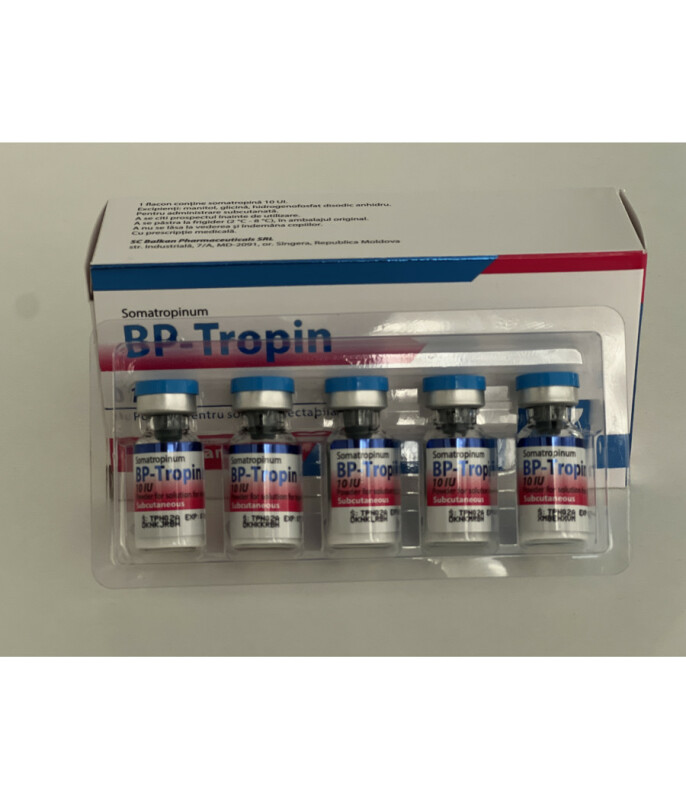 Купить гормон роста BP-tropin (БП-тропин) от Balkan Pharm (Балкан Фарма)BP-tropin – препарат гормона роста от популярной фармацевтической компании. Этот препарат используется не только в спортивной сфере, но и традиционной медицине. Многие атлеты хотят купить BP-tropin. Это связано с его высокой эффективностью и привлекательной стоимостью. Эффекты BP-tropinПрепараты на основе синтетического соматотропина начали использоваться в спорте еще в восьмидесятых. Однако тогда они с полным правом считались элитарными, так как их стоимость была крайне высокой. Однако ГР отличается большой эффективностью и профессиональные билдеры активно его использовали.Сегодня ситуация изменилась к лучшему. Учеными была разработана рекомбинантная технология. В результате цена BP-tropin выглядит привлекательно и рассчитана на широкий круг атлетов. Впрочем, вся продукция молдавской компании Balkan Pharma обладает хорошим качеством и доступной ценой. Именно этими факторами и можно объяснить ее высокую популярностью среди спортсменов.Гормон роста – один из самых мощных анаболиков в организме человека. Молекула этого вещества состоит из аминов. При этом синтетический ГР не отличается от эндогенного. Если вы решите заказать Eurotropin, то можете рассчитывать на получение следующих эффектов:значительно ускоряет процессы липолиза;улучшает рельефность тела;позволяет набирать высококачественную массу;укрепляет хрящевые, соединительные и костные ткани;увеличивает эффективность работы защитных механизмов организма.Многочисленные отзывы о BP-tropin свидетельствуют о высокой эффективности и безопасности этого препарата.Схема администрирования BP-tropinДля атлетов-любителей рекомендуемая суточная дозировка ГР находится в диапазоне 5-15 единиц. Рекомендуем каждый курс начинать с минимальной дозировки. Если в течение 5-7 дней серьезные эффекты не проявились, то дозу можно увеличить до 10-15 единиц. При этом в течение дня предстоит делать уже два укола. Длительность курса BP-tropin составляет минимум три месяца.Для получения максимального результата от использования ГР, опытные билдеры используют его совместно с другими видами фармы. Если целью употребления препарата является набор массы, то лучшими связками для гормона роста являются стероиды: Болденон и длинные Тестостероны. В период сушки ГР можно комбинировать с ААС, пептидами, Кленбутеролом, Йохимбином, тиреоидными гормонами. Наш онлайн-магазин приглашает к сотрудничеству жителей всех городов Украины: Кривого Рога, Одессы, Винницы, Хмельницкого и т.д.